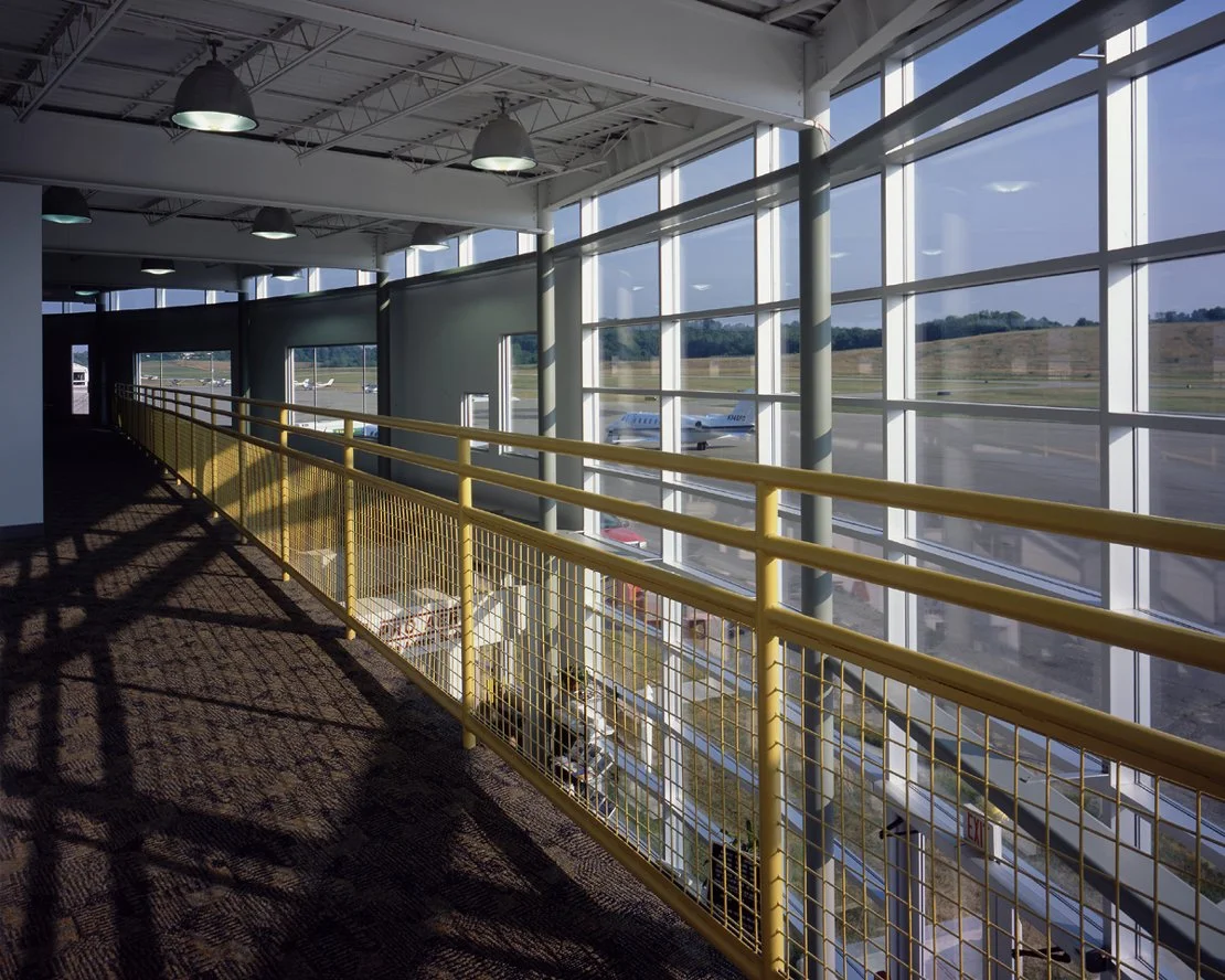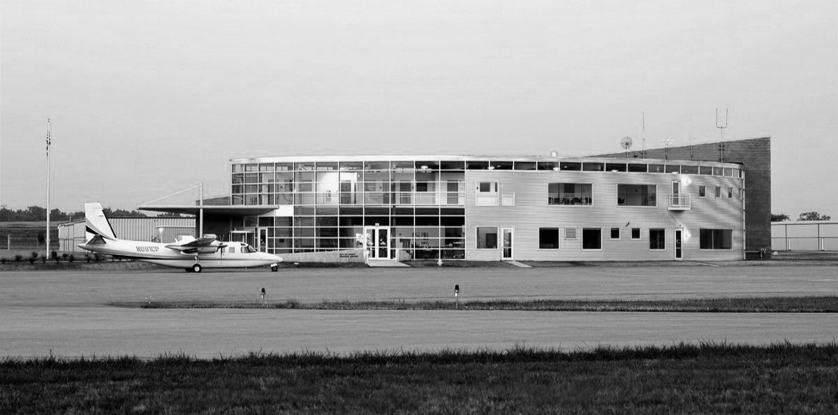 The award-winning 8,000 SF terminal building serves as a community gateway and was designed to meet the anticipated economic growth of the region. The interior space features a wing form that extends to the second floor..